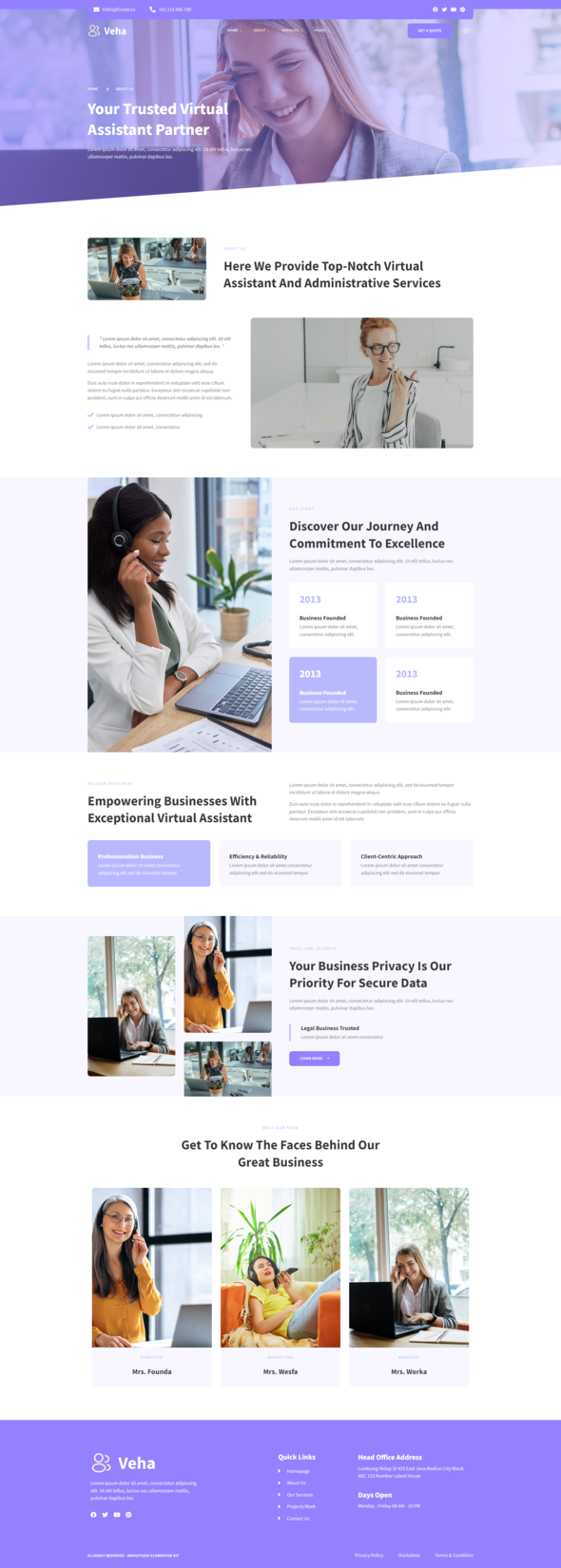 Veha – Virtual Assistant Administrative Elementor Template Kit